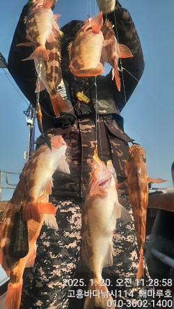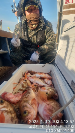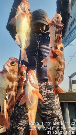 2025년01월24일 신발짝 왕열기 우럭 대박조황입니다◎ 해마루호가 뜨는이유? 조황때문이죠◎ 핵심포인트: 바로진입.. 바로히트..▣ 차원이 다른 조황으로 모십니다**조행기 *** 오늘은 우럭과 열기 잡고 왔습니다* 들물이 조금 약해서 중간 시간때 주춤..* 바람은 조금 있었습니다* 한조사님은 우럭을 한방에 히트 하셨습니다오신 조사님들 고생 많이 하셨습니다▣ 예약하기홈페이지 : 고흥바다낚시114http://bada114.sunsang24.com/예약전화:010-3602-1400▣ 밴드명 : 고흥바다낚시114http://band.us/band/68306541*조황,동영상조황,공지사항,*동영상조황만 모아모아 있습니다▣고흥바다낚시114 - YouTube 동영상보기https://www.youtube.com/channel/UCezfZ9JasrN6PdcxnG3bZtQ고흥바다낚시114 해마루호 예약안내 ○ 집결 주소 : 고흥군 목넘 가는길 52-3 ( 녹동항 ) 남해식당뒷 ○ 승선 주소 : 고흥군 도양읍 봉암리 2766-14 ( 득량도선장 ) ○ ☎️ 전화: 061-843-4114 ○ ☎️ 휴대폰: 010 - 3602 -1400○○예약하기 예약확인하기○○ 홈페이지 http://bada114.sunsang24.com/○밴드 가입하기 조황보기http://band.us/band/68306541○유듀브 동영상조황https://www.youtube.com/channel/UCezfZ9JasrN6PdcxnG3bZtQ