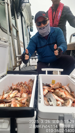 2025년03월11일 돼지우럭 신발짝 왕열기 대박조황입니다◎ 해마루호가 뜨는이유? 조황때문이죠◎ 핵심포인트: 바로진입.. 바로히트..▣ 차원이 다른 조황으로 모십니다**조행기 *** 오늘도 열기/우럭낚시 다녀 왔습니다* 오전 들물 때 엄청 쏟아졌습니다* 이후로 따복따복 낱마리로 잡았습니다* 내일은 더많이 잡으러 갑니다* 날씨는 양호 물색 중간 수준이었습니다* 오신 조사님들 고생 많이 하셨습니다▣ 예약하기홈페이지 : 고흥바다낚시114http://bada114.sunsang24.com/예약전화:010-3602-1400▣ 밴드명 : 고흥바다낚시114http://band.us/band/68306541*조황,동영상조황,공지사항,*동영상조황만 모아모아 있습니다▣고흥바다낚시114 - YouTube 동영상보기https://www.youtube.com/channel/UCezfZ9JasrN6PdcxnG3bZtQ고흥바다낚시114 해마루호 예약안내 ○ 집결 주소 : 고흥군 목넘 가는길 52-3 ( 녹동항 ) 남해식당뒷 ○ 승선 주소 : 고흥군 도양읍 봉암리 2766-14 ( 득량도선장 ) ○ ☎️ 전화: 061-843-4114 ○ ☎️ 휴대폰: 010 - 3602 -1400○○예약하기 예약확인하기○○ 홈페이지 http://bada114.sunsang24.com/○밴드 가입하기 조황보기http://band.us/band/68306541○유듀브 동영상조황https://www.youtube.com/channel/UCezfZ9JasrN6PdcxnG3bZtQ