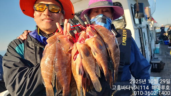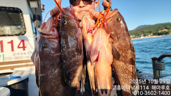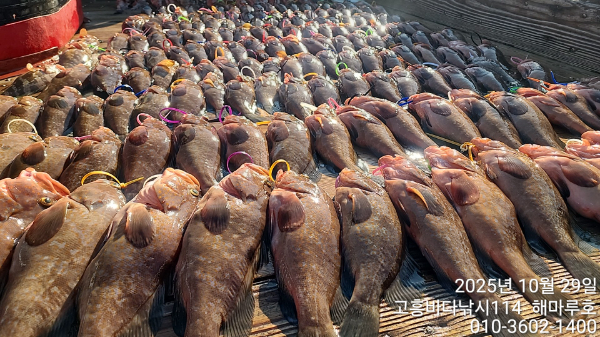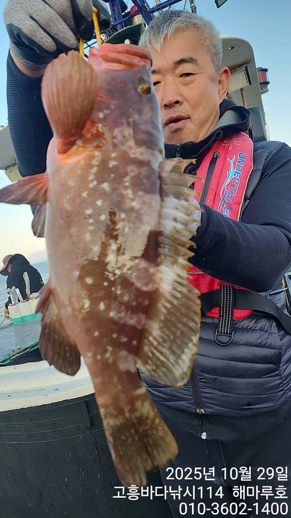 | 제목 : ■붉바리 이정도는 잡아 봐야지요 굵근 붉바리로 대박조황입니다[10월29일] ◎ 해마루호가 뜨는이유? 조황때문이죠 ◎ 핵심포인트: 바로진입.. 바로히트.. ▣ 차원이 다른 조황으로 모십니다 | ||